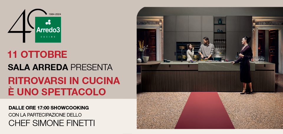 Protagonisti dell’evento le cucine Arredo3 e l’arte culinaria nonché la simpatia dello chef Simone Finetti.